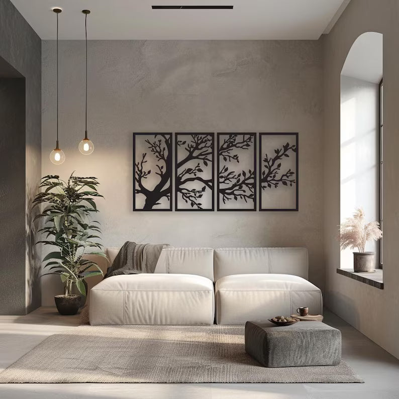 Unesite dozu prirodne elegancije u svoj dom uz naš ručno isečeni 4-panelni zidni dekor sa motivom grane drveta. Svaki panel precizno je izrađen laserskim sečenjem i spreman za direktno kačenje na zid, bez potrebe za dodatnom obradom.