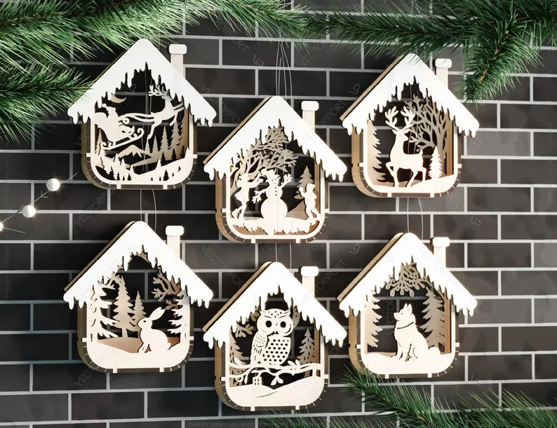 Ovaj set od 6 unikatnih ukrasa u obliku kuÄica savrÅ”eno kombinujeĀ prirodno drvo,Ā skandinavski dizajnĀ iĀ ruÄni radĀ ā prava mala prazniÄna Äarolija! āØ