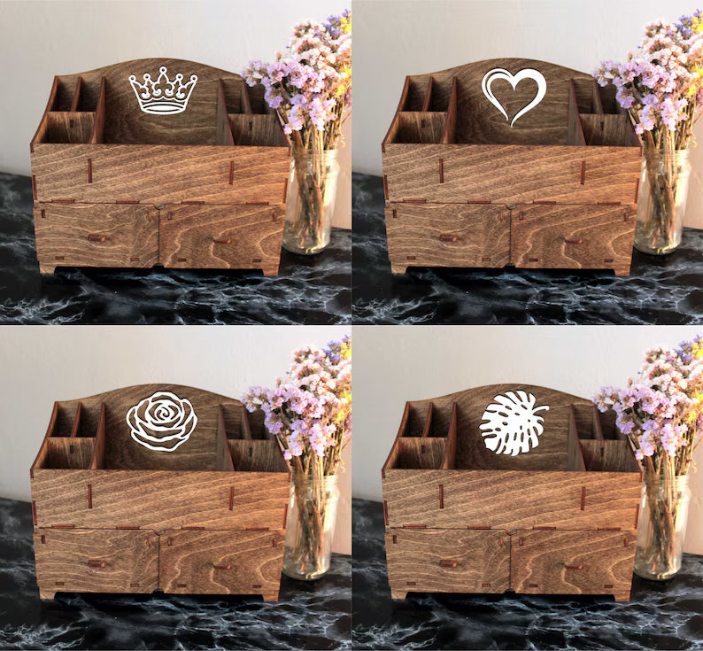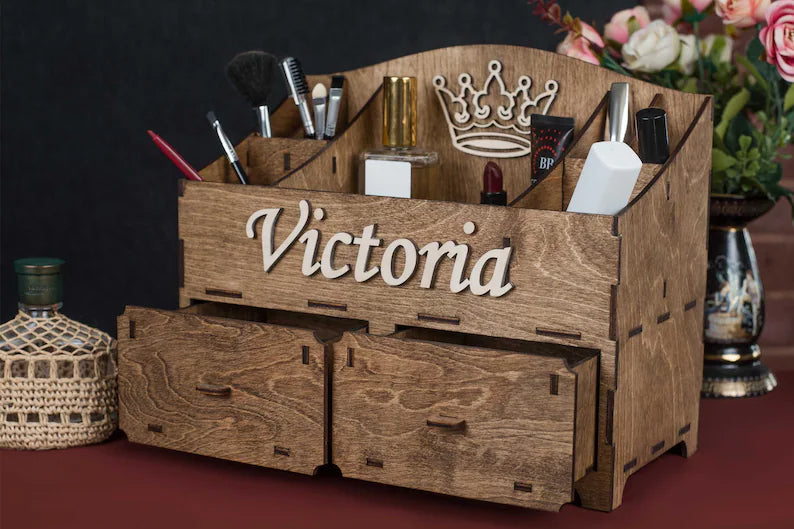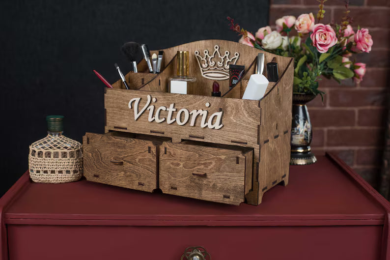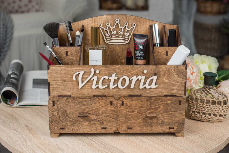Da li trošite previše vremena tražeći omiljeni ruž ili četkicu u haosu na stolu? Naš luksuzni drveni organizator nije samo praktično rešenje, već i prelep dekorativni element koji nosi Vaše ime (ili ime Vama drage osobe).